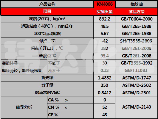 四、KN4006優(yōu)質(zhì)低粘橡膠油質(zhì)量指標(biāo) |